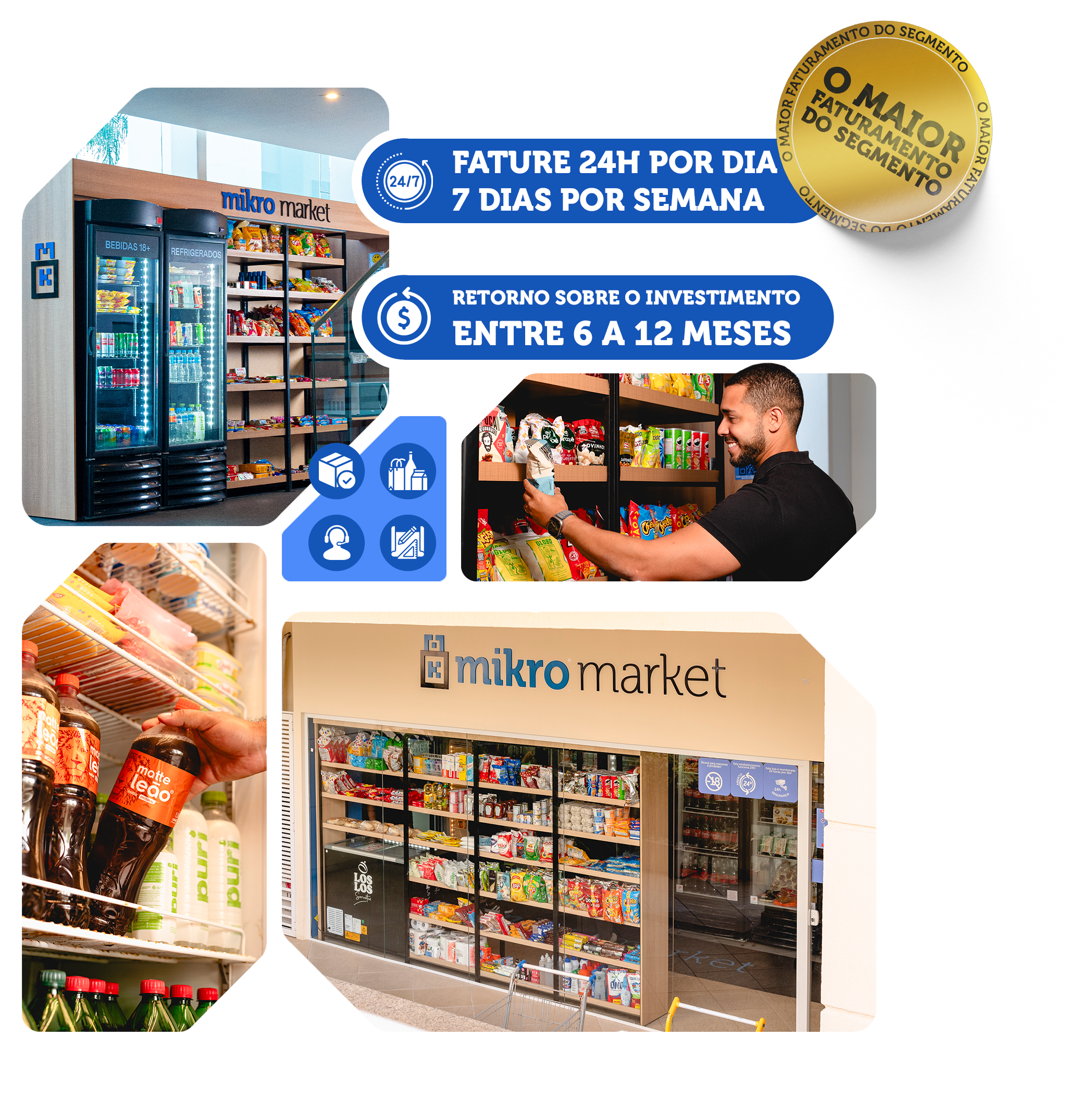 As lojas Mikro Market funcionam 24 horas por dia, 7 dias por semana, garantindo conveniência e acesso a qualquer hora.